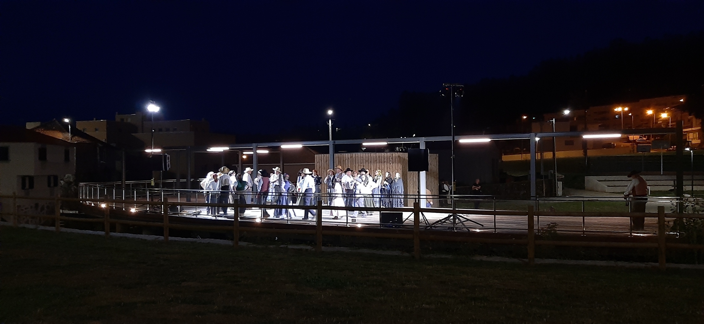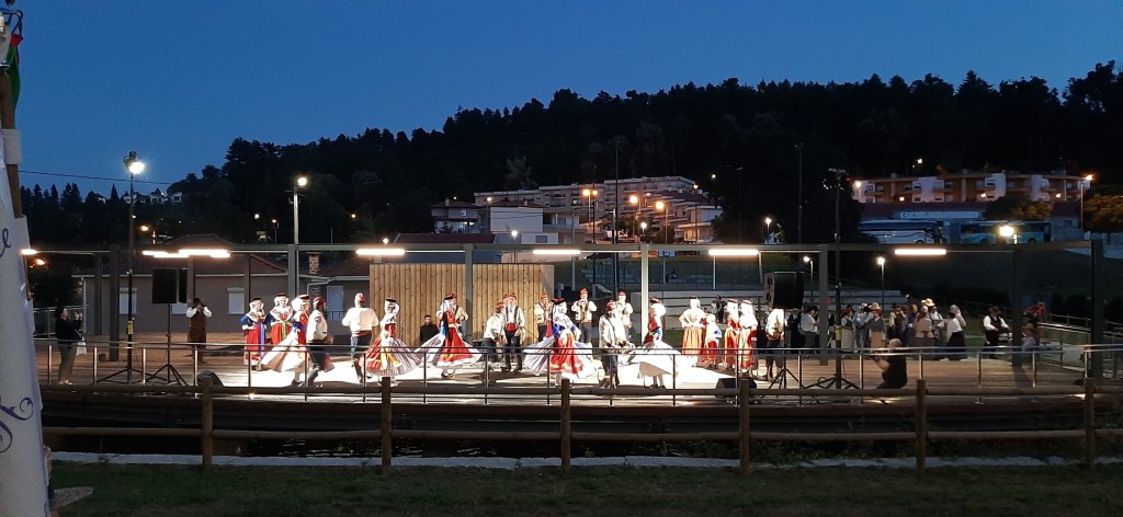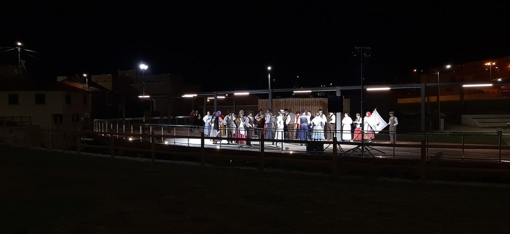 A celebração arrancou na sexta-feira, com os sons vibrantes da Bardoada – Grupo do Sarrafo, mas foi no sábado, dia 12 de julho, que o coração do nosso Rancho palpitou com entusiasmo. O convívio teve início ao jantar e às 21h, um curto desfile dos grupos antecedeu a cerimónia de abertura. Ao subirmos ao palco pelas 23h00, sentimo-nos parte de uma tapeçaria viva, entrelaçada pelos laços do folclore nacional.